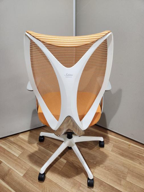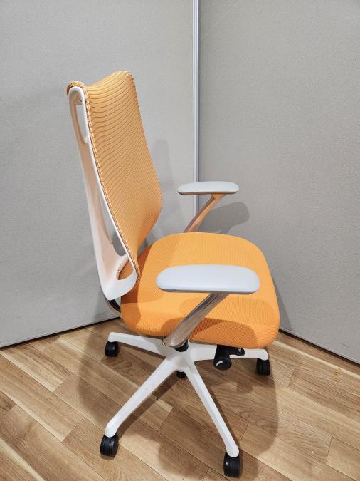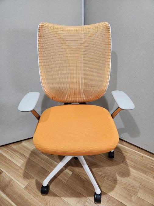 【在庫入替セール品】【前傾機能で作業効率アップ!安定感のある座り心地で人気の大好評サブリナチェア!】【ご自宅用にもオススメ!】 ■オカムラ(okamura)製 Sabrina(サブリナ) ハイバック 肘付き ■背面メッシュ ■固定肘 ■オレンジ×ブラックフレーム 【弊社使用欄:A01013661】