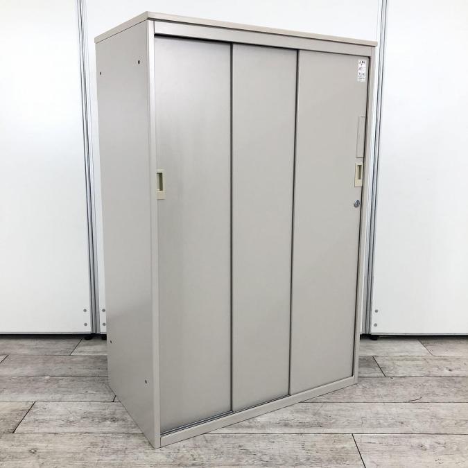【スライド引き戸だから開閉スペースに困りません!】■コクヨ(KOKUYO) 3枚引き違い書庫 ローキャビネット ■天板付き ■グレー ※ベース無- なんば日本橋店