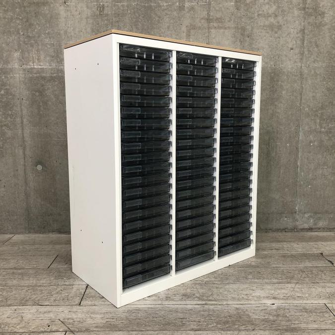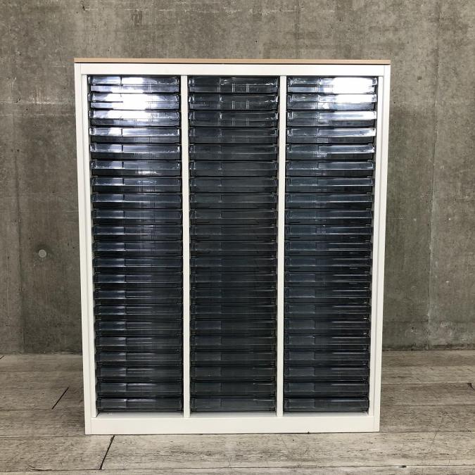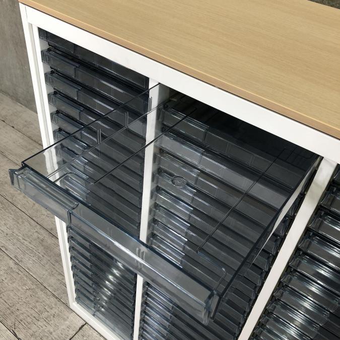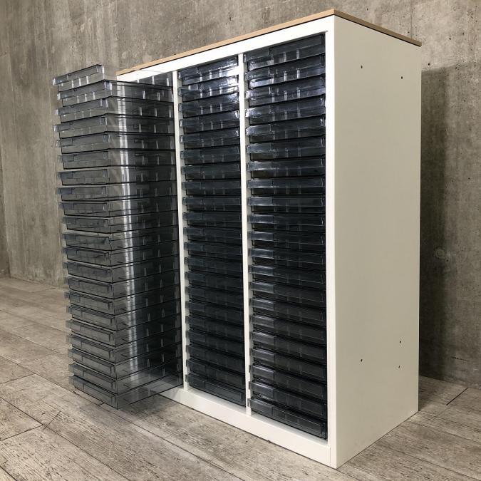 ★オカムラ製 レクトライン ホワイト 3列x16段 浅型x11段/深型x5段混在 W900xD450xH1150サイズ 天板付 クリスタルトレーキャビネット クリスタルトレイ!!