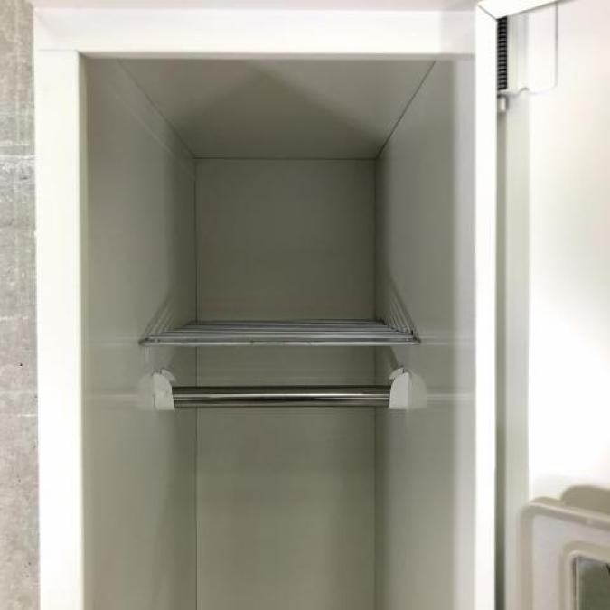 - 完備鏡、ネクタイ掛け、傘立て、網棚、フック等が全て完備されている。