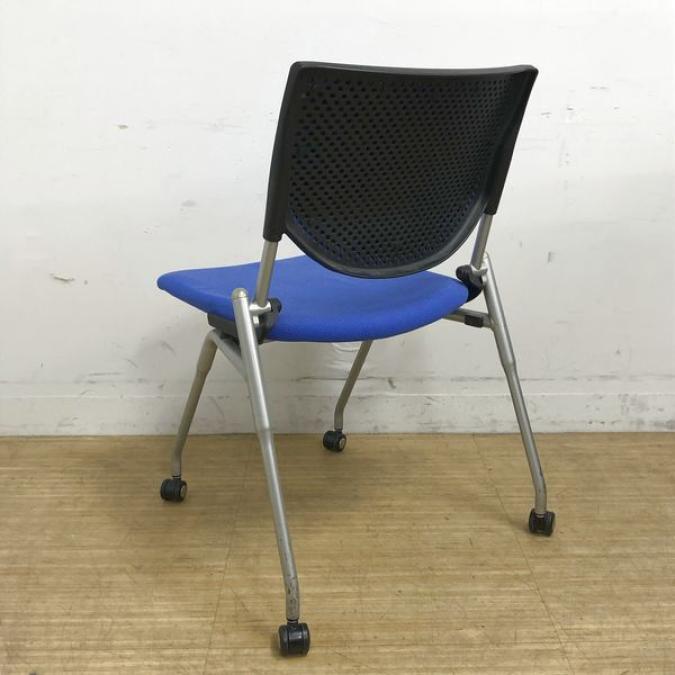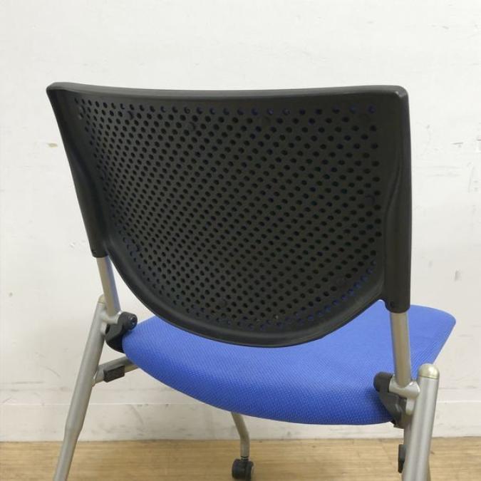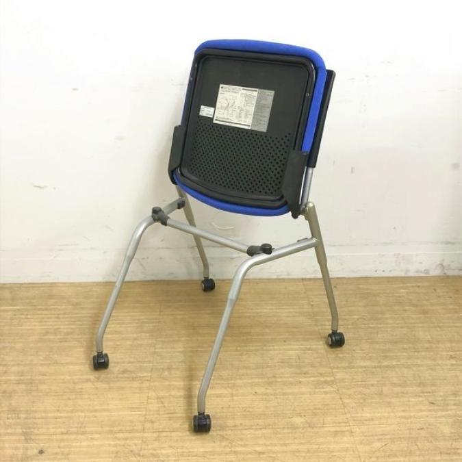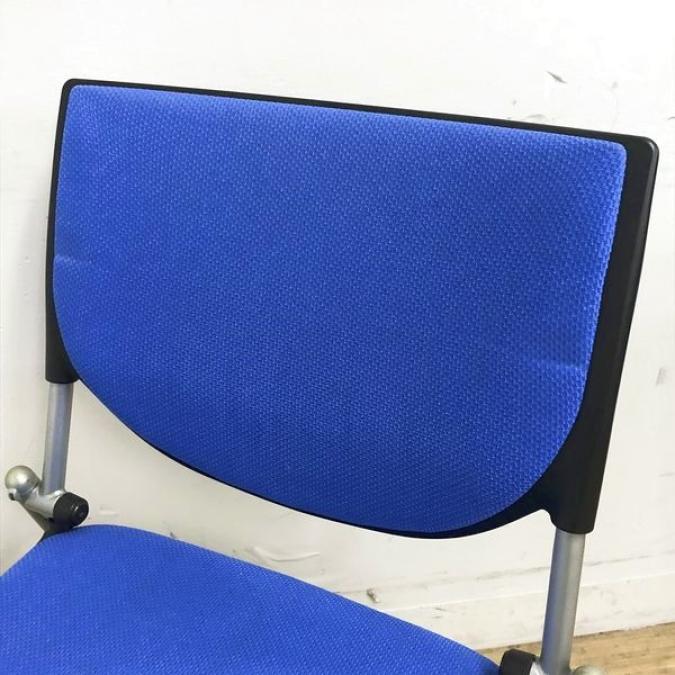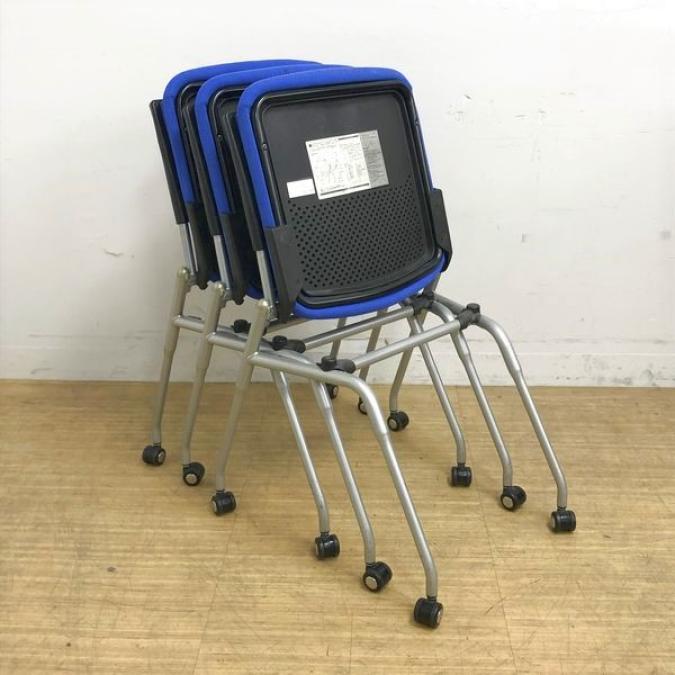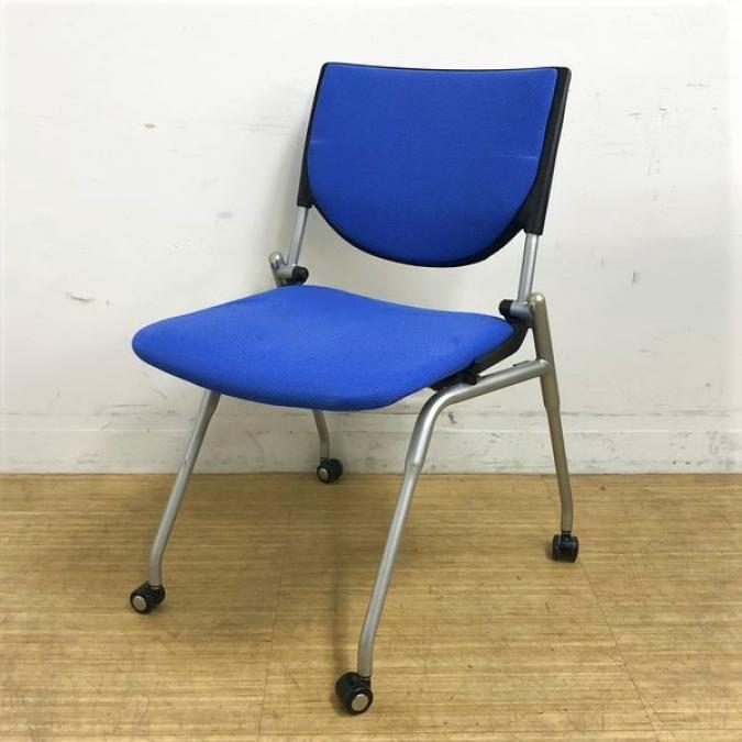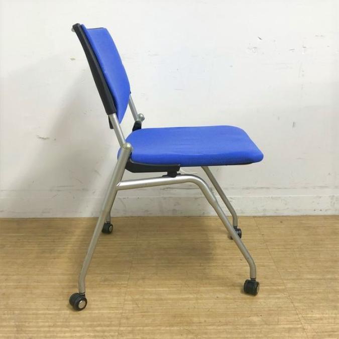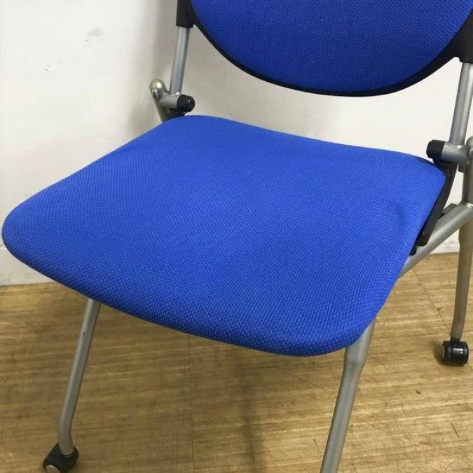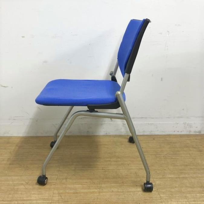 【会議室にピッタリ!コンパクト設計で収納がしやすい!】■オカムラ プロスタックシリーズ ネスティングチェア ミディアムブルー ■フレキシブルに使えるキャスター付!【在庫入替セール品!(本在庫限定価格)】