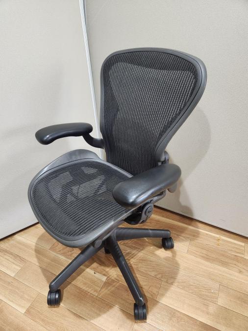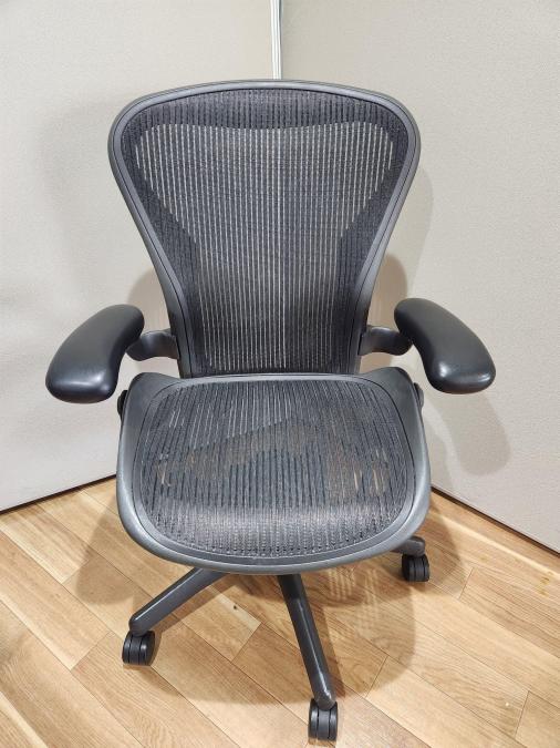 【★状態イマイチのためお安く!】■ハーマンミラー製 アーロンチェア Bサイズ 固定肘 ※キズあり・ランバーサポート無・昇降ガス圧弱めのためお安く!【訳あり特価品】