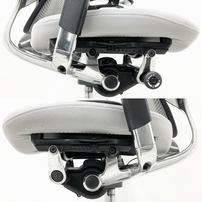 - 座面の前後スライド調整レバーで操作(前後50mm分調整で)できます。(グラデーションサポートメッシュタイプを除く)