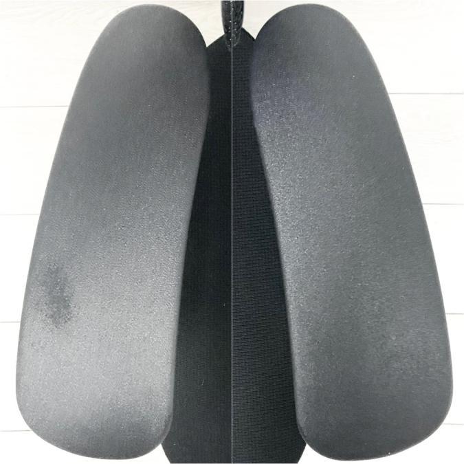 目立つキズや凹み:肘パットに摩耗が見受けられます。