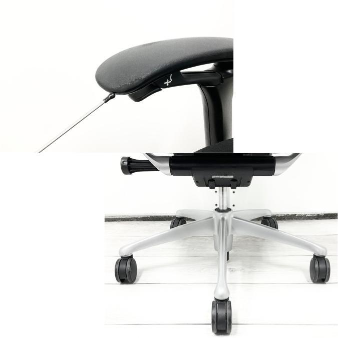 入替セール品につきお値下げ!【世界で認められた革新的タスクチェア!人間工学に基づいた快適な座り心地を実現!】オカムラ(okamura) コンテッサ (Contessa) 革張り ハイバック肘付き 可動肘 ブラック 【座面シワ・リクライニングロック解除時異音があるため、Bランク品】【現物画像】