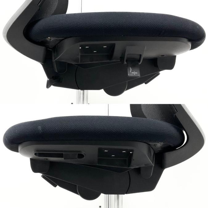 - 座面の高さは上下に90㎜、奥行は前後に50㎜調節可能。さらに骨盤を支えるポスチャーシート採用で着座時の前滑りを防ぎます。