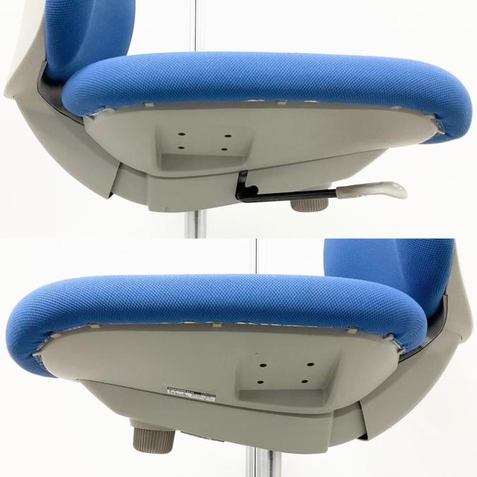 なので、「どれでも同じでしょう」と過小評価されがちですが、さすがのオカムラ製!座面の無段階上下調整やリクライニングの反発の強さ調整などに加え、リクライニンする際に足首の位置を支点にして動く、アンクルチルトリクライニングという特殊な機構が搭載されています。「人間が寄りかかる動き」にぴったりとフィットし、快適さをもたらしてくれます。