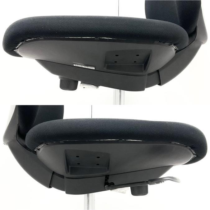 なので、「どれでも同じでしょう」と過小評価されがちですが、さすがのオカムラ製!座面の無段階上下調整やリクライニングの反発の強さ調整などに加え、リクライニンする際に足首の位置を支点にして動く、アンクルチルトリクライニングという特殊な機構が搭載されています。「人間が寄りかかる動き」にぴったりとフィットし、快適さをもたらしてくれます。