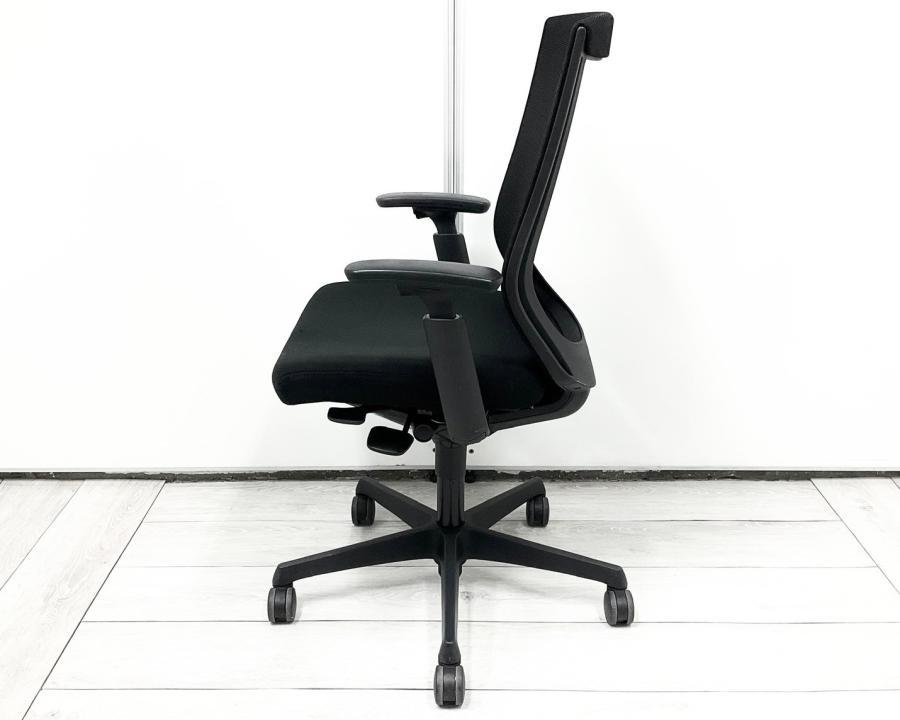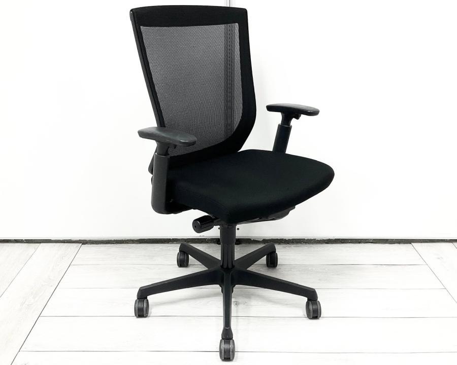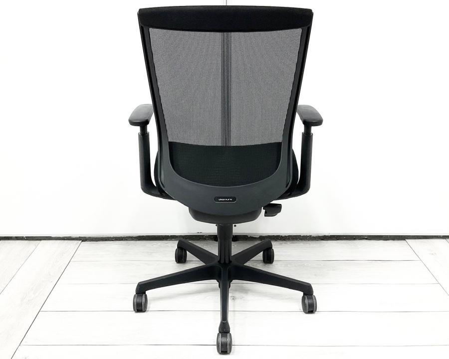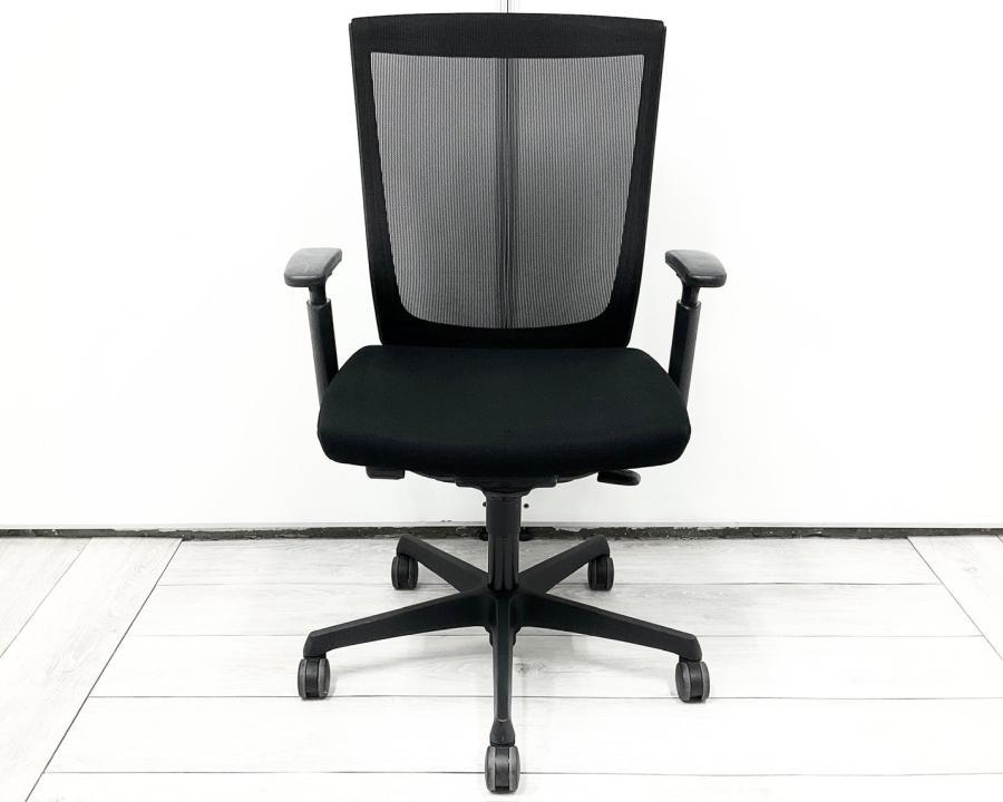 【在庫入替セール】【4脚限定】【背中全体をサポートするハイバックタイプのメッシュチェア!】■okamura(オカムラ)製 エスクード(ESCUDO)チェア 肘付き ハイバック 背面メッシュ ■可動肘 ■色:ブラック【K10】