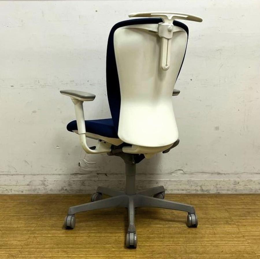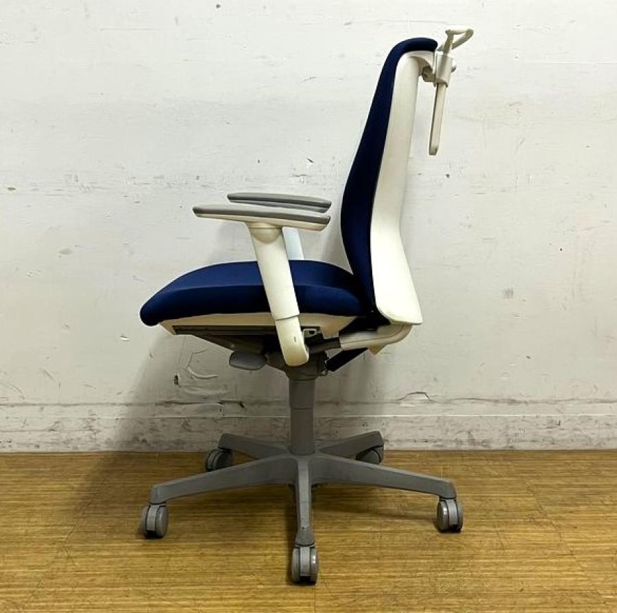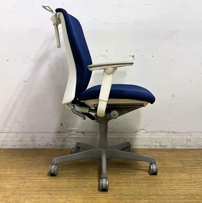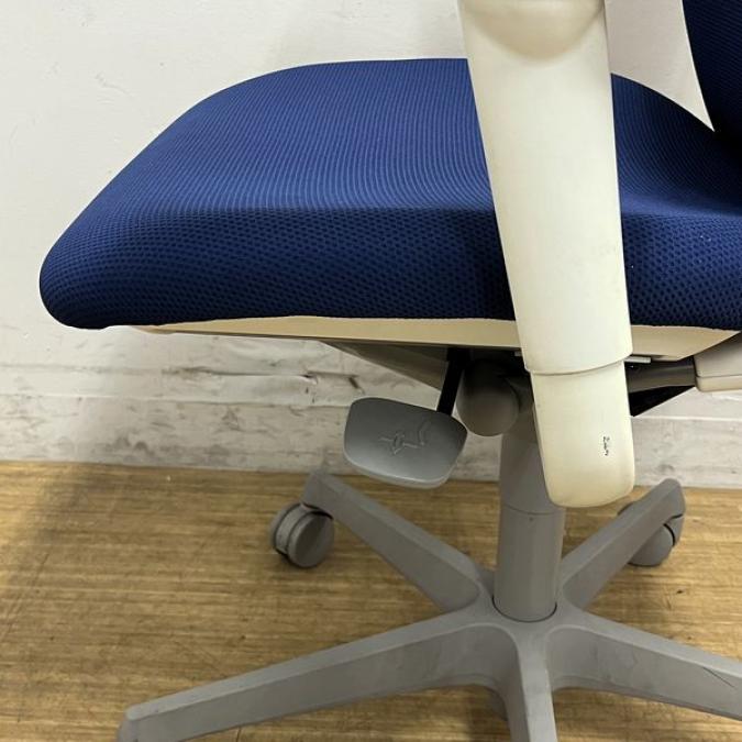 【在庫入替セール】オカムラ スラート ハイバックモデル アジャストアーム ミディアムブルー×ホワイトフレーム コートハンガー付き- 名古屋千種店