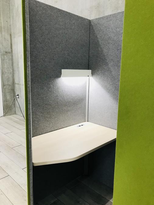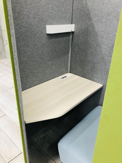 視線を遮り、音を和らげる吸音パネルに包まれながら働く。その新しい感覚をぜひご体感ください!
