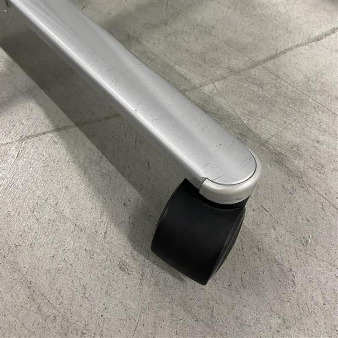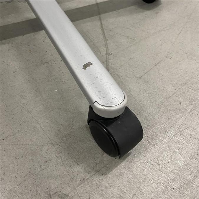 - 一部不具合あり天板歪み、アジャスター無し、キャスター使用不可ようなそのテーブルの本来の効用を果たすための機能以外の一部が使用不可な状態。(例、キャスターロッ ク機能使用不可、棚板無し等がある。)