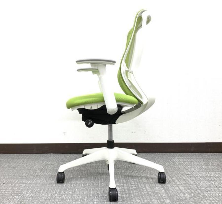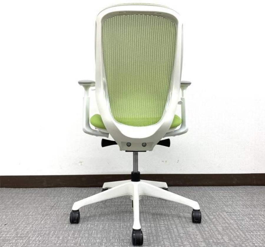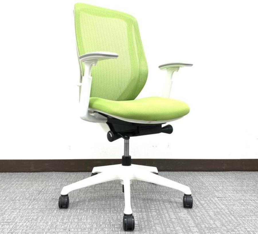 【ワーカーを支える機能を多数持つ人気チェア!優しい座り込みで姿勢も安定!】■オカムラ製 シルフィー 肘付ハイバックチェア 背面メッシュ ■可動肘 ■座面:ライムグリーン 脚:ホワイト オフィスバスターズ 東大阪店 2脚限定!