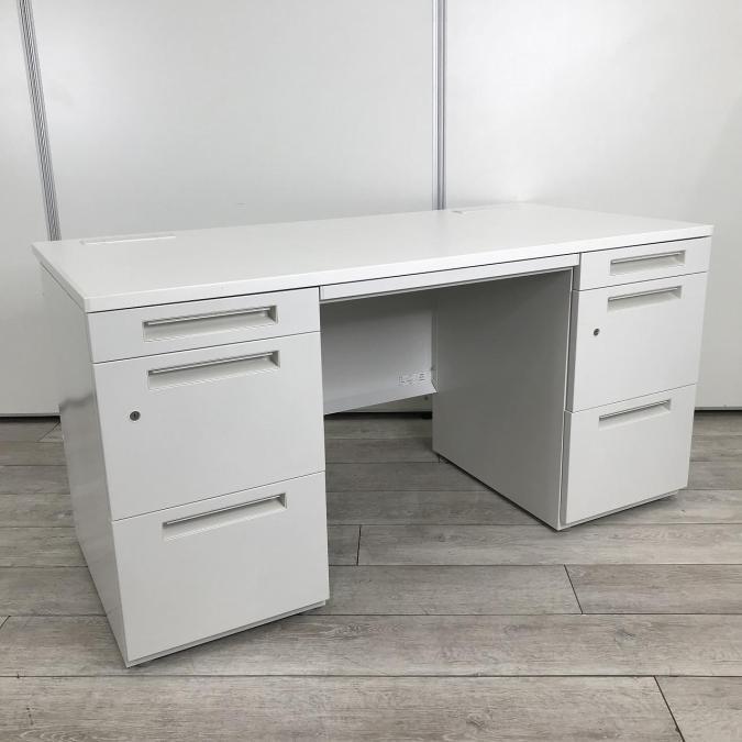 【上長席におすすめです!幅広サイズで収納スペースも豊富な幅1400㎜の両袖デスクが入荷!】■イナバ(Inaba) デュエナシリーズ 両袖デスク ■幅1400㎜×奥行700㎜ ■配線Kタイプ ■ホワイト【入れ替えセール】- つくば店