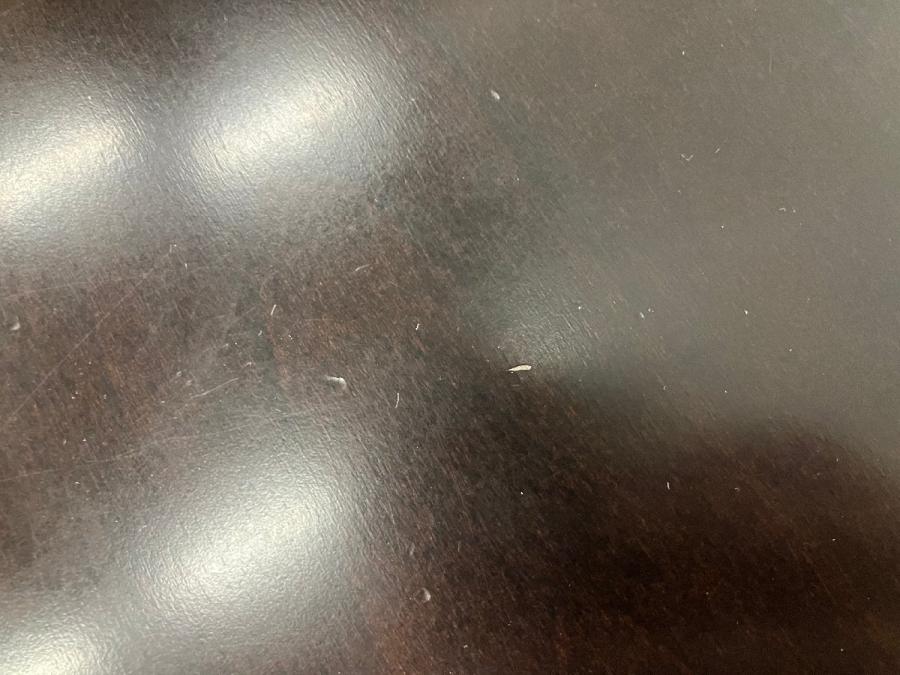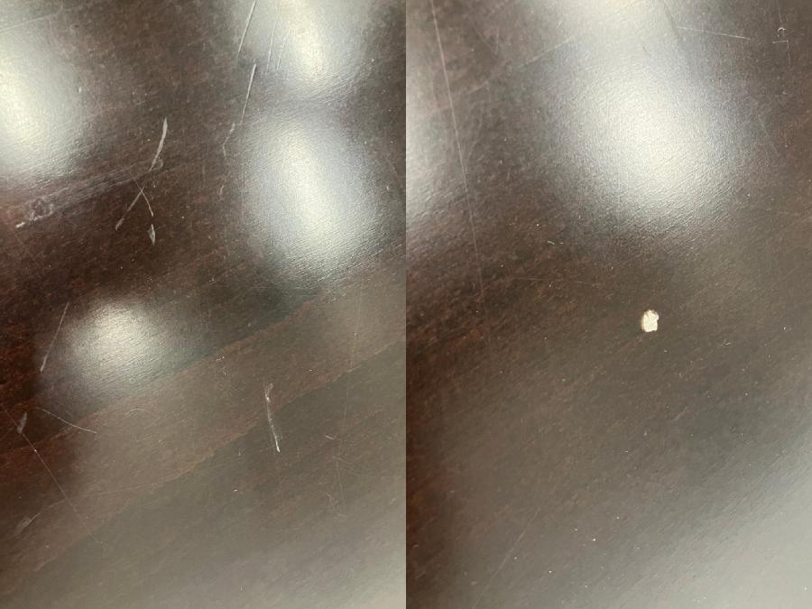 - 目立つ箇所あり傷・凹みが多数、深い傷・凹みが一部ある。(例、天板、幕板、棚板、サイド部分、脚部等にある。)