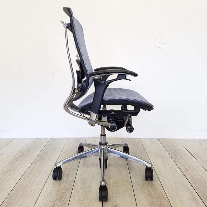 【オカムラ製の最高級チェアが残り1脚限りです!!】オフィスバスターズ 東大阪店 オカムラ製 コンテッサ シリーズ ダークブルー アジャストアーム※可動肘 背/座面メッシュ ランバー 世界で認められた革新的タスクチェア!人間工学に基づいた快適な座り心地を実現! 肘付きハイバックチェア!! 中古 外部倉庫品