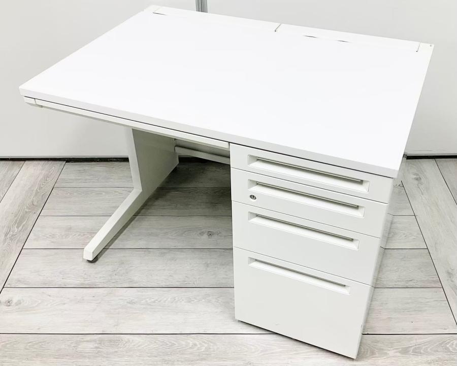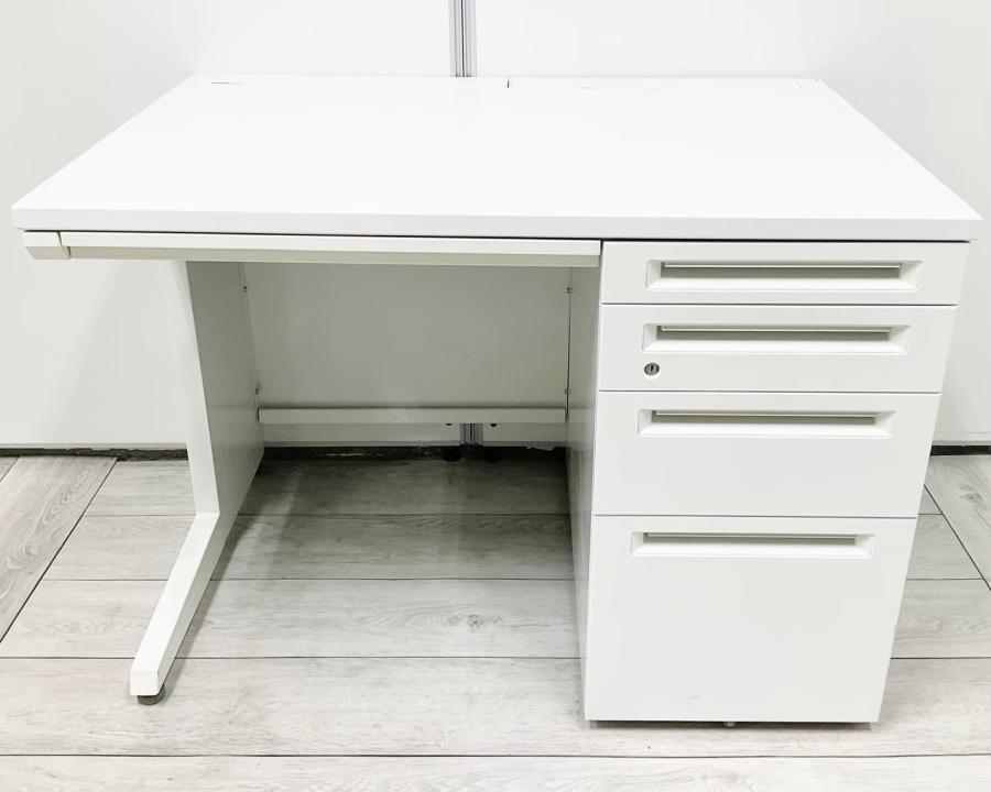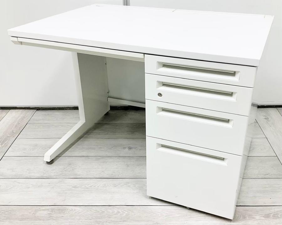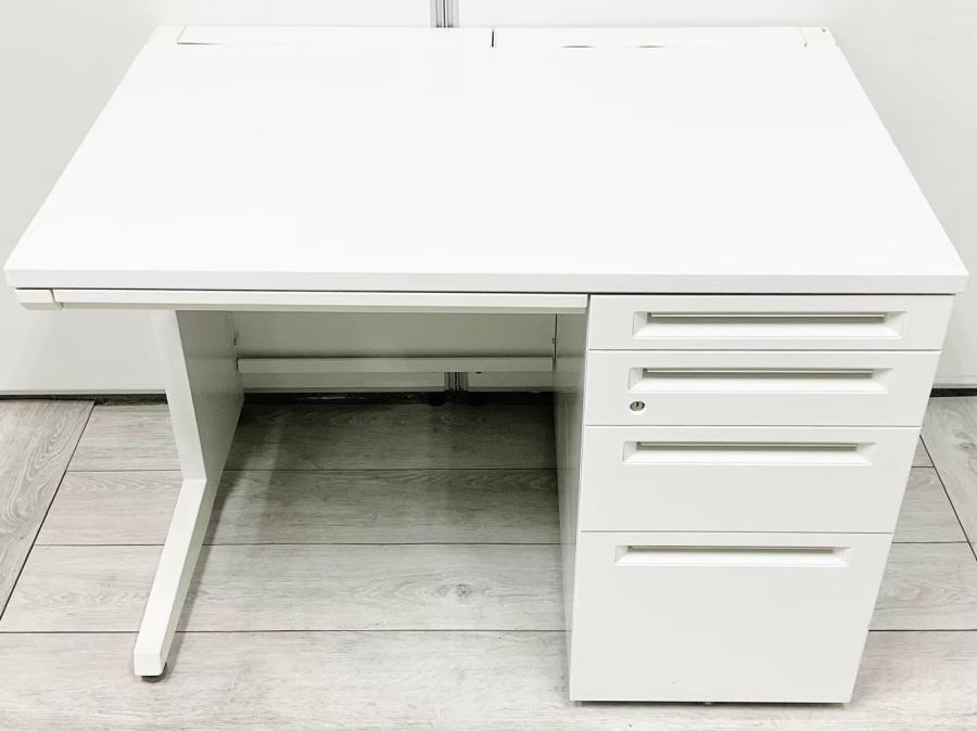 【在庫セール品・6台限定】【T12】 ■オカムラ(okamura)製 アドバンスシリーズ(ADVANCE) 片袖机 W1000mm ■右袖4段 ■ネオホワイト ■シリンダー鍵【袖引き出しが4段!コンパクトサイズで人気の片袖デスク!】