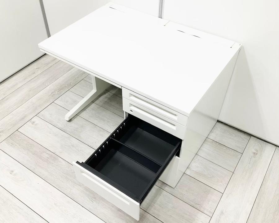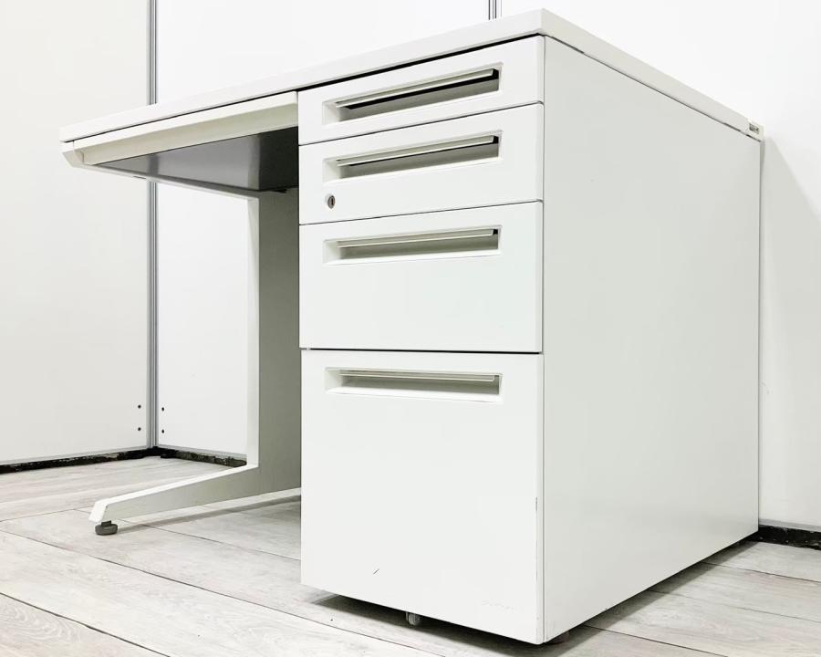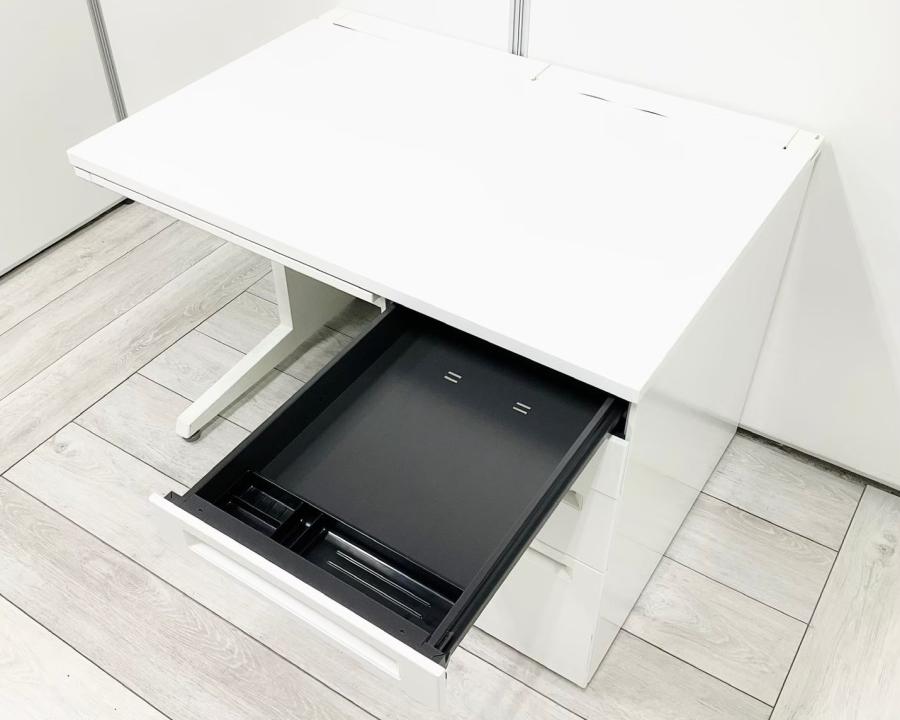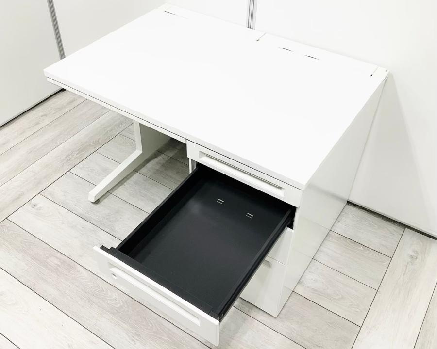 【幅1000㎜タイプのコンパクト事務机!袖引き出しが4段!】 ■オカムラ(okamura)製 アドバンスシリーズ(ADVANCE) 片袖机 W1000×D700×H720㎜ ■ネオホワイト ■シリンダー錠