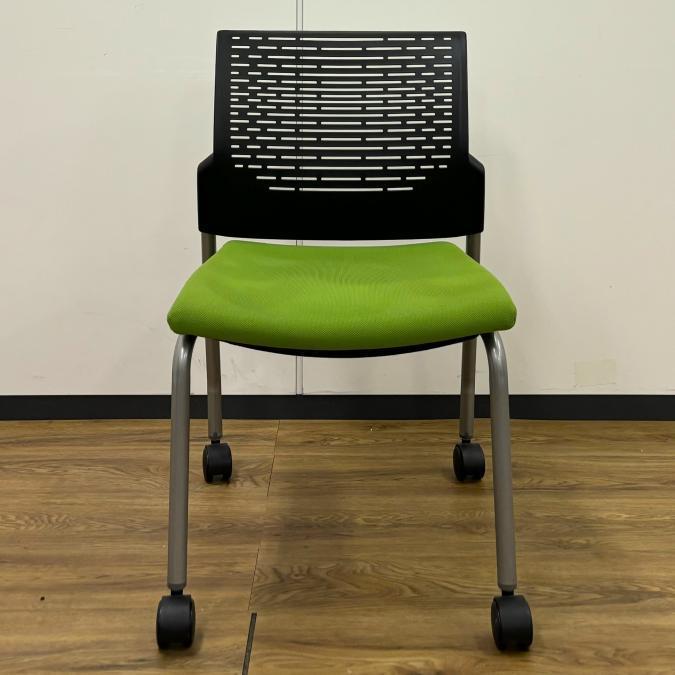 【在庫入替セール】ライオン スターブシリーズ スタッキングチェア グリーン キャスター付- 東大阪店