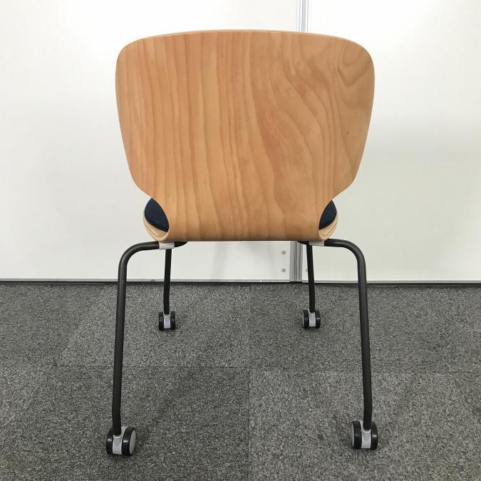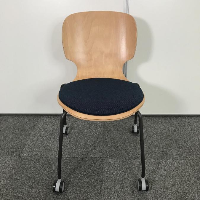 【4脚限定】【カフェ調オフィス・リフレッシュスペースにおすすめ!重ねて収納可能!】■ クレス製 (CRES) HABES (ハベス) ACタイプ スタッキングチェア ■キャスターつき 木製シェル クッション付き ■ネイビーブルー オフィスバスターズ 梅田本店- 大阪梅田本店