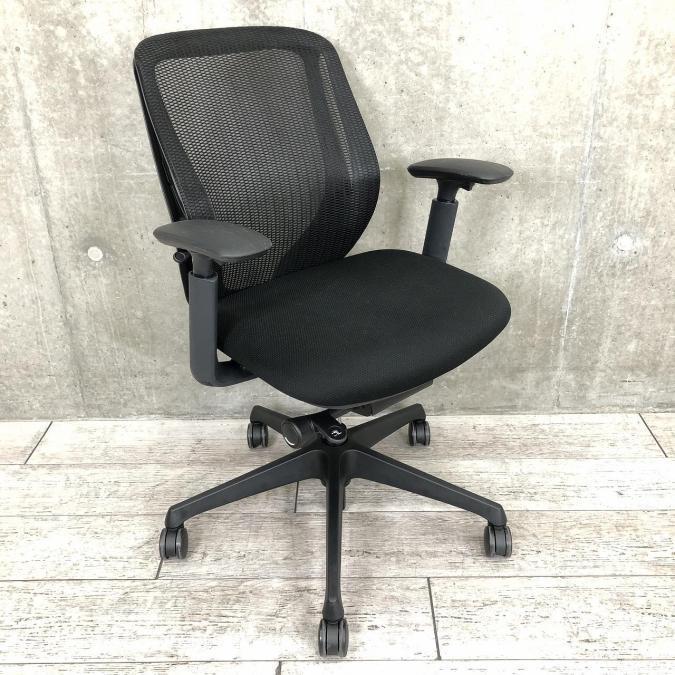 【在庫入替セール品】【1点のみ!】オフィスの新定番!大好評シルフィーチェアが入荷!人気の高いオールブラック! ■オカムラ/シルフィー/ブラック 可動肘付き- なんば日本橋店
