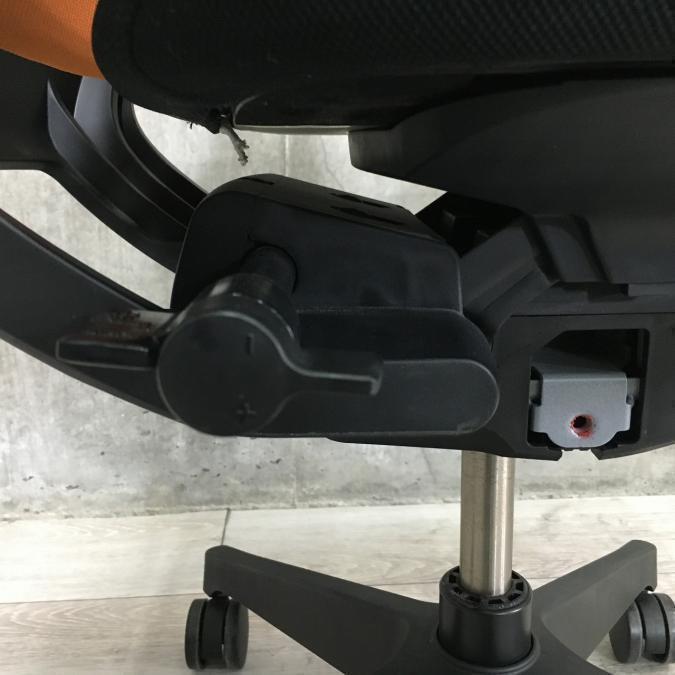 - ワーカーの体重に合わせて、無操作でロッキングが調整される体重感応Rメカを採用。体重に関係なく最適な座り心地を可能にしました。
