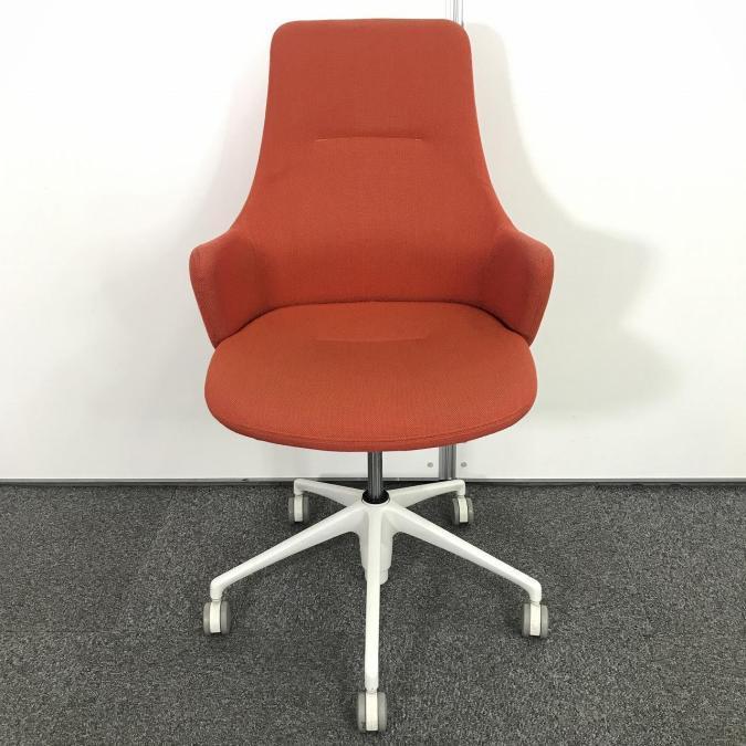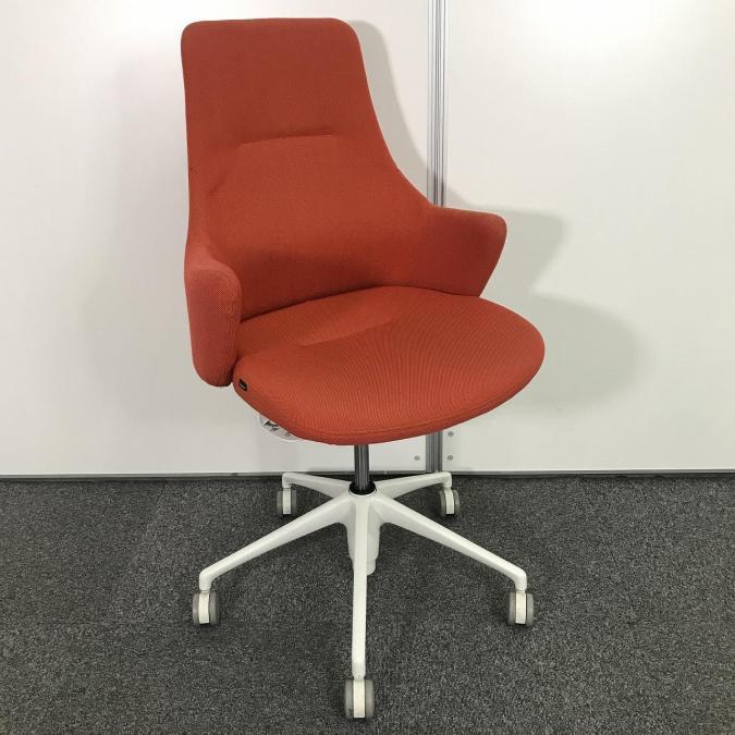 【カジュアルだけど機能的!】【働きやすく、居心地の良いオフィスへ】オカムラの新シリーズ!■Lives(ライブス)ワークチェア ハイバック ■okamura(オカムラ) ■オレンジ張地 ホワイト脚- 福岡博多店