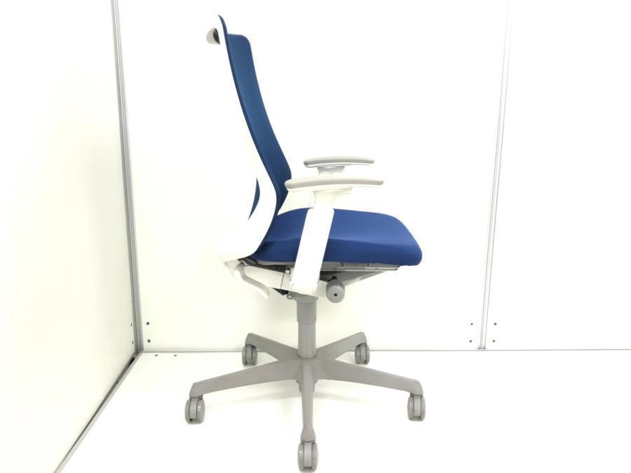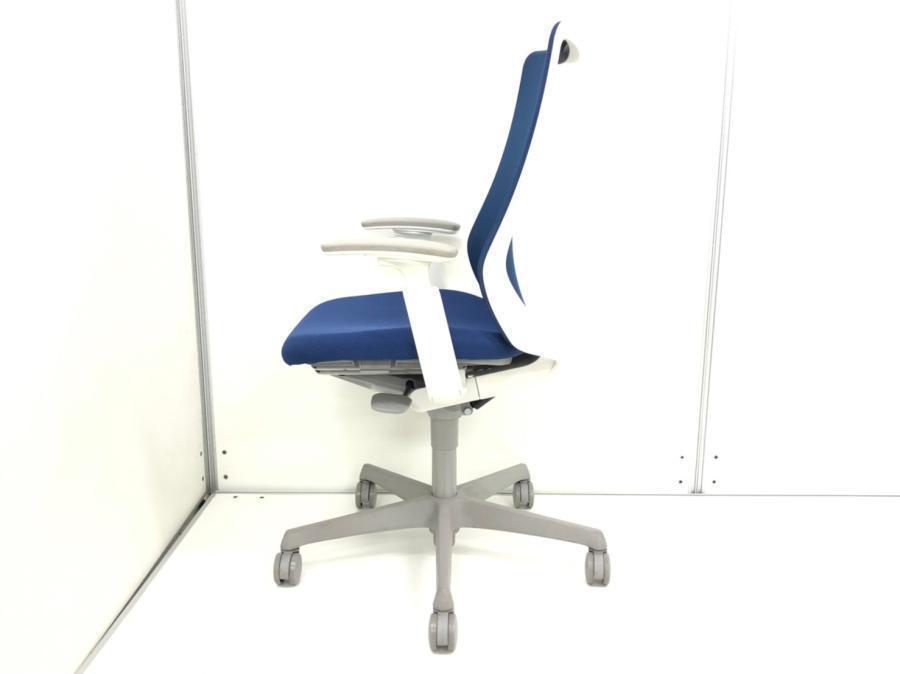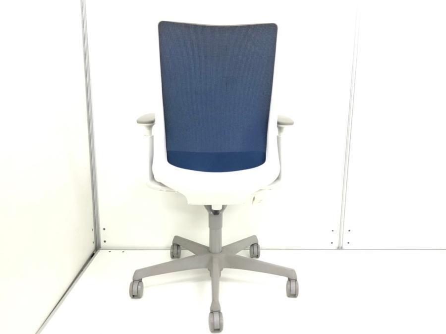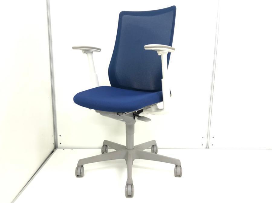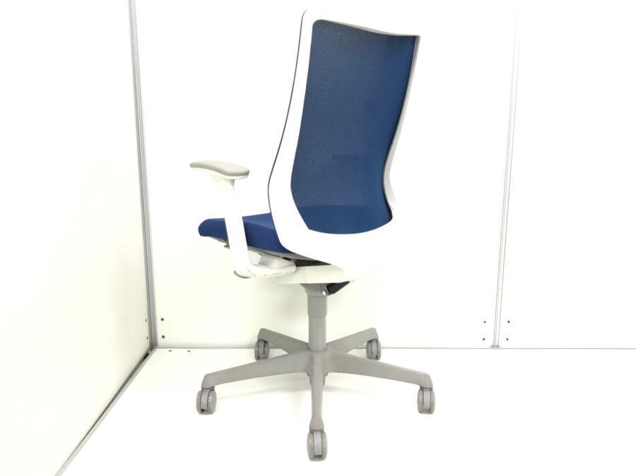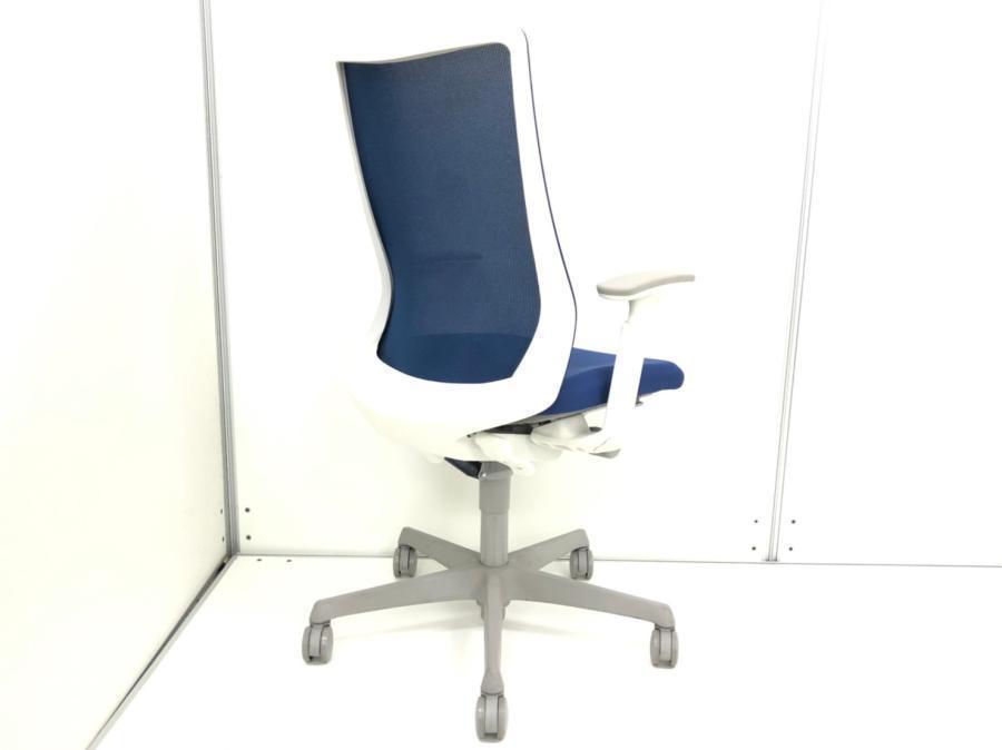 オカムラ(okamura)フルーエントチェア メッシュ仕様 ■色:ブルー ホワイトフレーム 可動肘 ハイバック仕様- 茨城南店