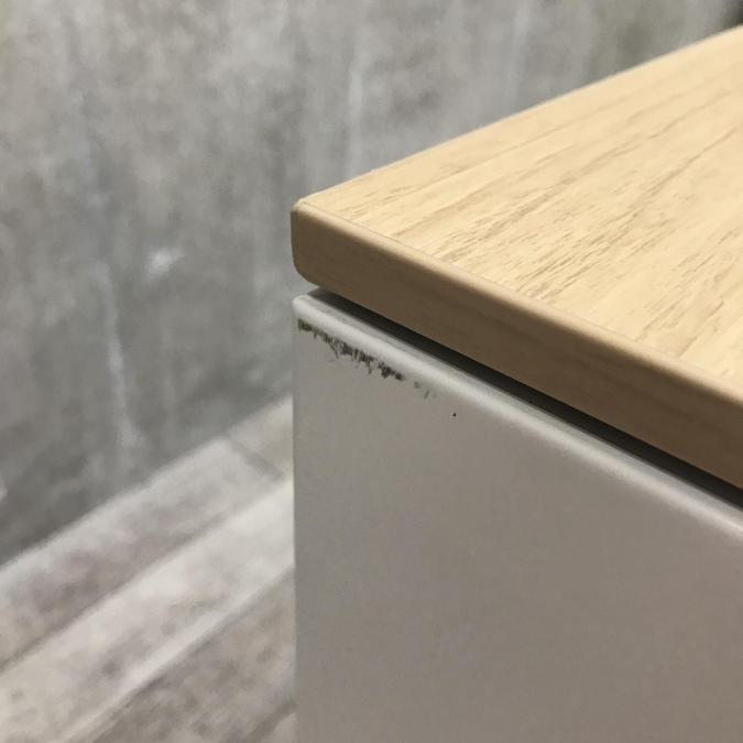 - かなり強い濃い黄ばみ・変色が商品全体にある。(例、天板、正面、背部、サイド部分にある。)