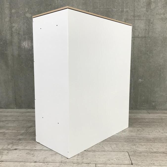 【横幅・奥行コンパクトモデル!】オフィスの必需品!大容量の三段キャビネット! ■オカムラ/レクトライン/ホワイト W800×D450㎜ ナチュラルカラーの天板付き シリンダー鍵
