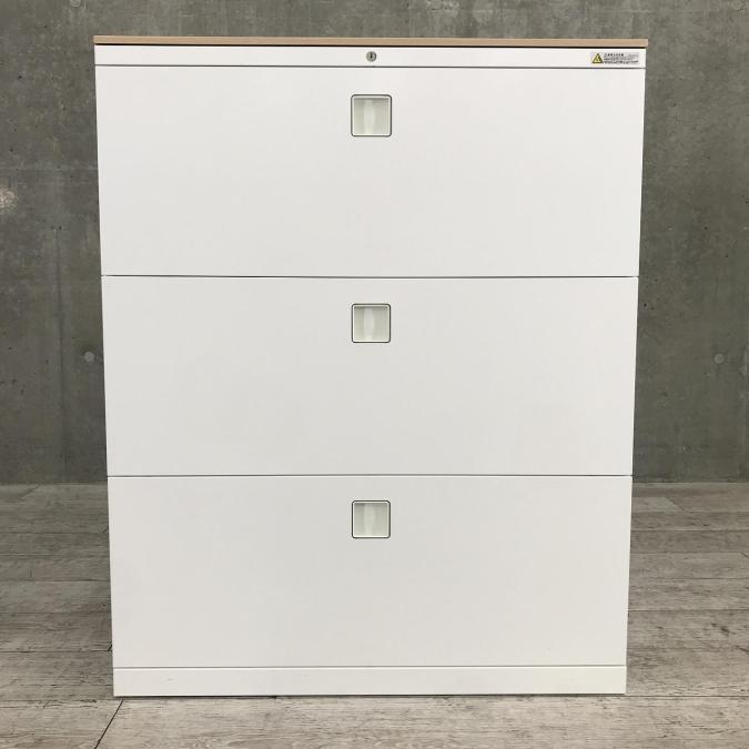 【3/3(火)入荷予定商品!】【オフィスの書類をスッキリ整理!天板付きでカウンターとしてもお使いいただけます!】■オカムラ(okamura)製 レクトライン(Rectline)シリーズ 3段ラテラル ローキャビネット ■W900×D450×H1120mm ■天板付き ■シリンダー錠 ■ホワイト