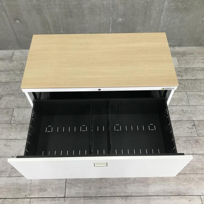 【天板付き】【窓下収納に!】中古市場数少ない2段引き出しタイプの書庫が入荷!/オススメ(おすすめ) /人気商品【弊社使用欄:】■オカムラ■レクトライン/ホワイト/シリンダー錠