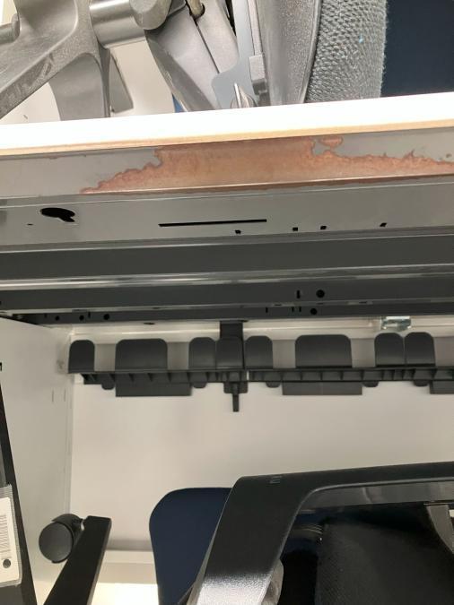 - 地震時、センター引出しが飛び出さないよう、ラッチ機構を装備。脚はデスクの横ズレを軽減させる設計になっています。