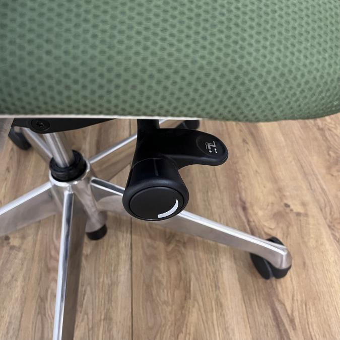 - 座面右下のダイヤル操作で、リクライニングの強弱調整が行えます。これまでのダイヤル式よりも、少ない回転数で、最弱?最強の調整が可能です。