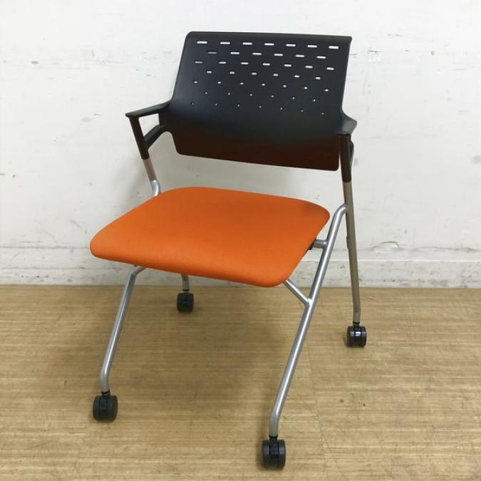【在庫入替セール品】【定価約5万円】【肘付きで長時間の会議も安心の座り心地】【背もたれクッション無しモデル】■コクヨ ピエガ ネスティングチェア ■オレンジ