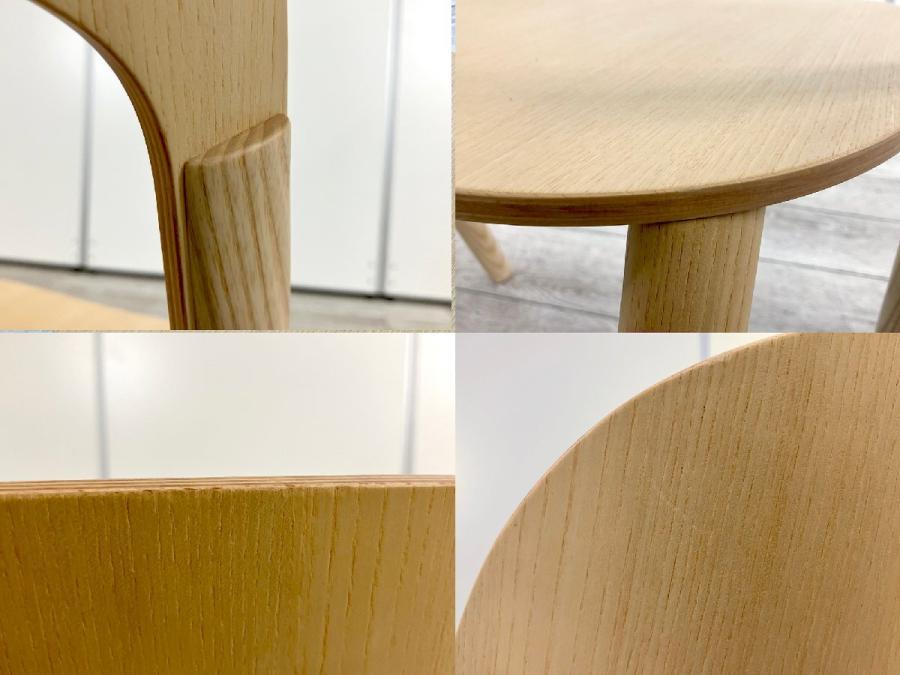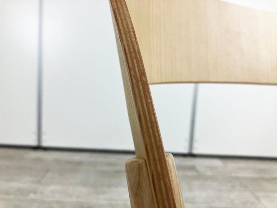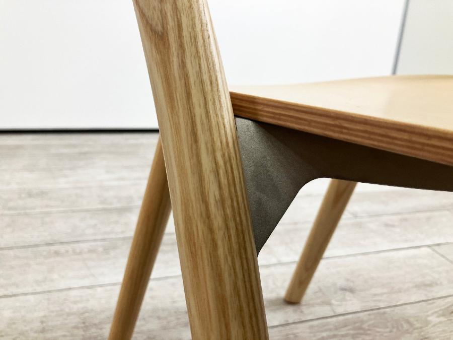 一件、木製のシンプルなチェアですが、座面裏にアルミのパーツが構造材としてくっついていて、 デザイン的にもアクセントになっています。
