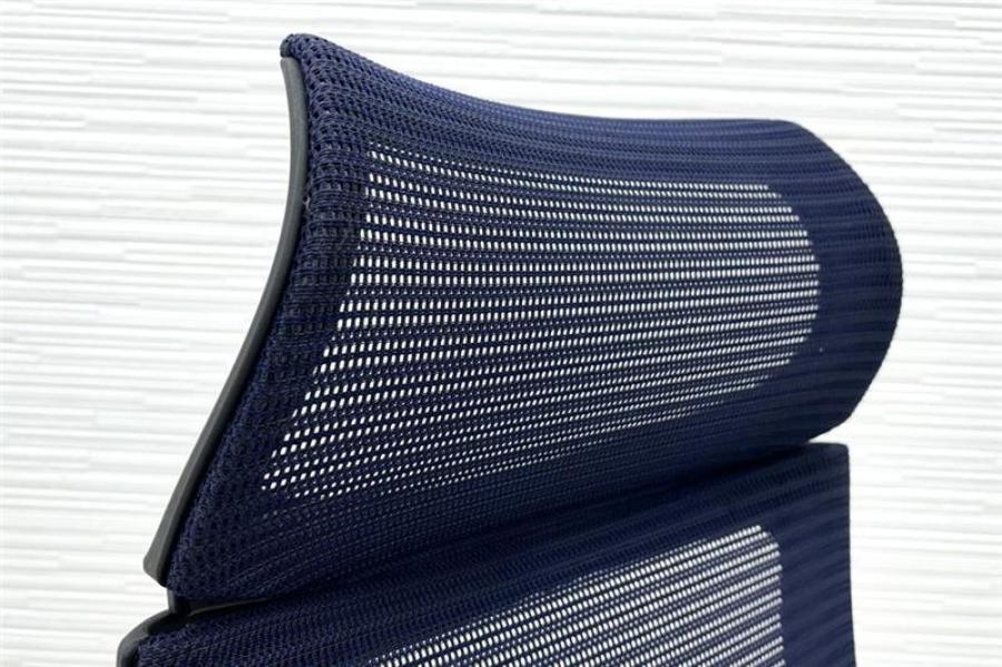 オフィスの執務室、会議室に!/オススメ(おすすめ) /人気商品【弊社使用欄:A01036030】■肘付き ハイバック 背面メッシュ ■可動肘 ■ダークブルー × ホワイトシェル/オカムラ(okamura)製 バロン(Baron)チェア