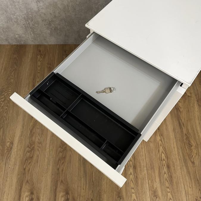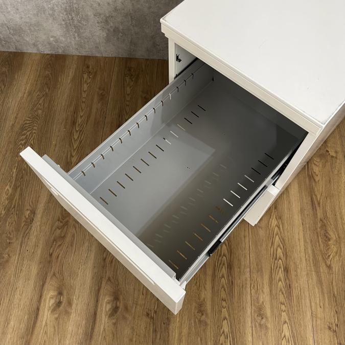 - 一部不具合ありその脇机・ワゴンの本来の効用を果たすための機能以外の一部が使用不可な状態。(例、引出が開閉しづらい、 キャスターロック機能使用不可、ラッチ不良 等がある。)