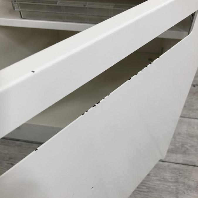 - かなり強い黄ばみ・変色が商品全体にある。(例、天板、正面、背部、サイド部分にある。)