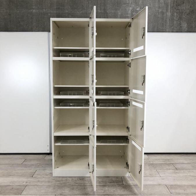 【在庫入替セール品】【マスターキー作成不可のためお安く!】【1台で8人分の収納可能なモバイルロッカー!個人の荷物や書類、ノートパソコン収納に便利です!】■8人用パーソナルロッカー ■ホワイト ■ダイヤル錠 ■パーソナルロッカー ■メールボックス付 【弊社使用欄:A00966853】- 在庫数
