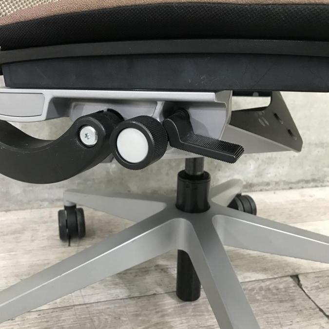 快適な座り心地に不可欠な調節機能である、上下昇降、座面の奥行き調整、リクライニングなどを備えており、操作もわかりやすく好評です。 特に、座面の奥行きは、座面下の左右に通った細いバーで調整でき、座ったままで軽やかに滑るように調整が可能です。 価格面では、新品では高めですが、中古は流通も多く、定価の3割前後の価格で高級チェアの座り心地を手に入れることができます!