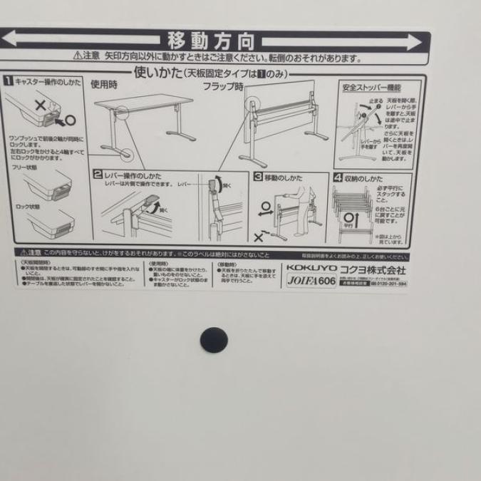 - 一部不具合あり天板歪み、アジャスター無し、キャスター使用不可ようなそのテーブルの本来の効用を果たすための機能以外の一部が使用不可な状態。(例、キャスターロッ ク機能使用不可、棚板無し等がある。)