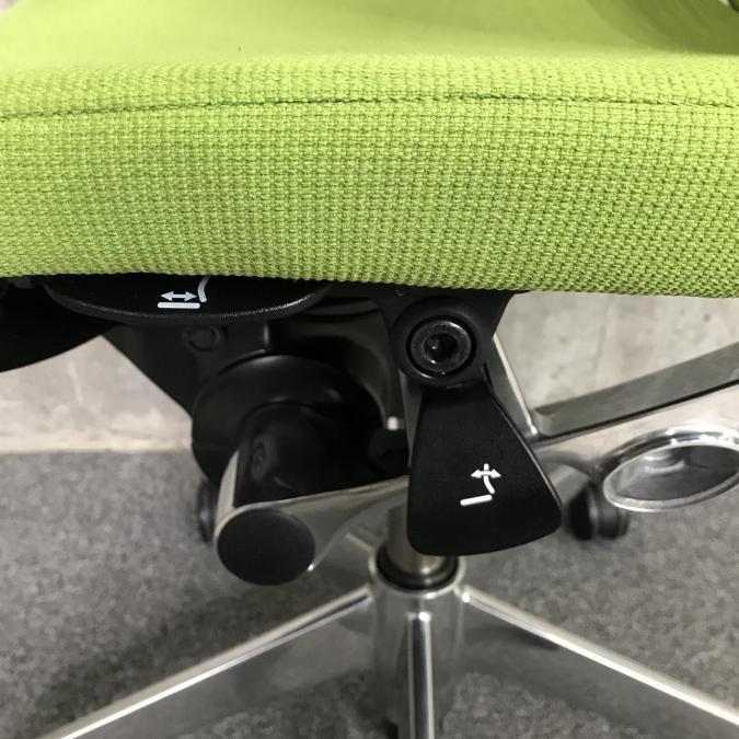 座面のすぐ右下にあるレバーの操作により、座面位置の上下調整(100mm)が可能です。