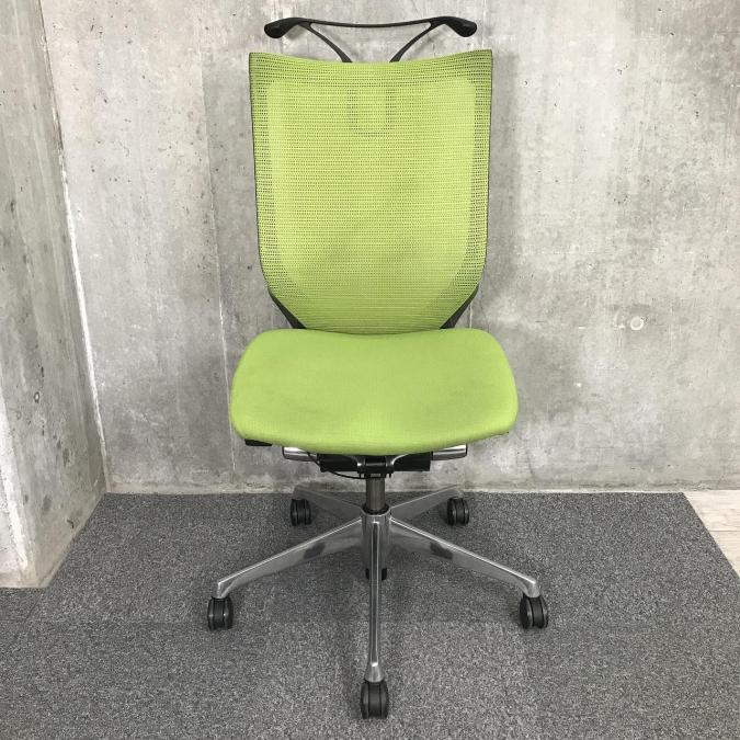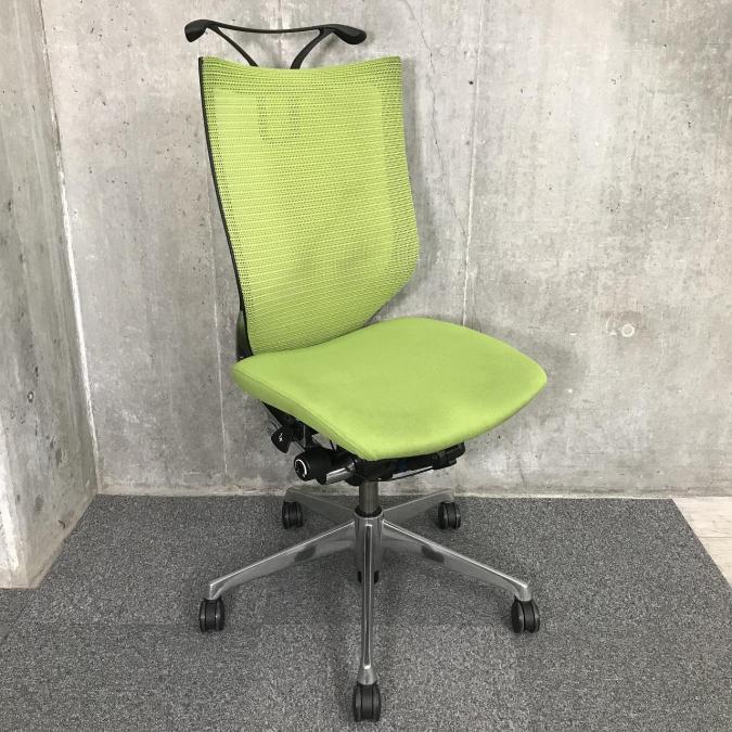 【商品入れ替えセール】明るいグリーンで居心地の良いオフィスへ!人気のメッシュチェア ■オカムラ(okamura)製 バロン(Baron)チェア ハイバック ■肘無し コートハンガー付き ■ライムグリーン 【オフィスの執務室、会議室におすすめ!】☆★大特価セールはこちらのキーワードで検索☆★→→【大放出】- 埼玉本店