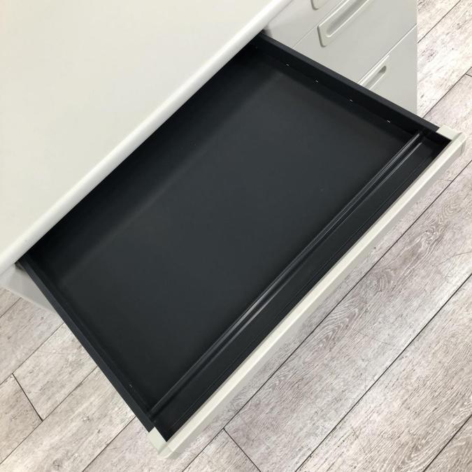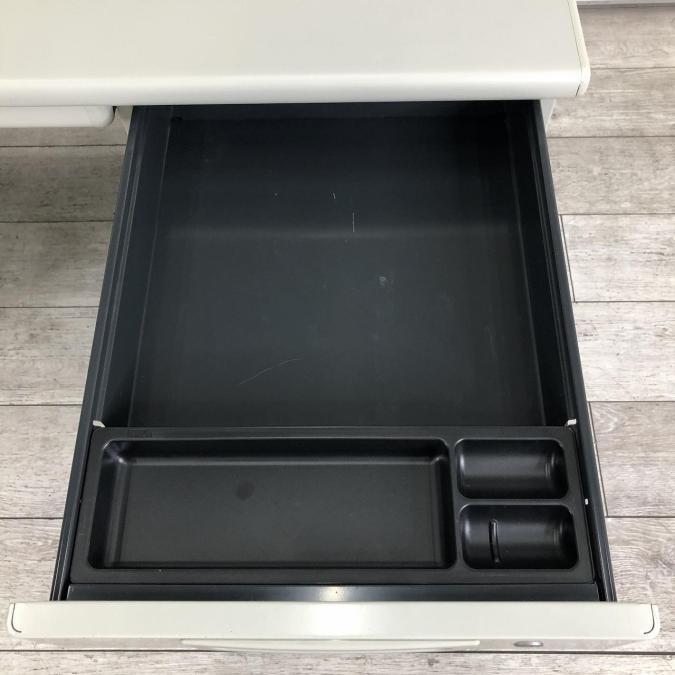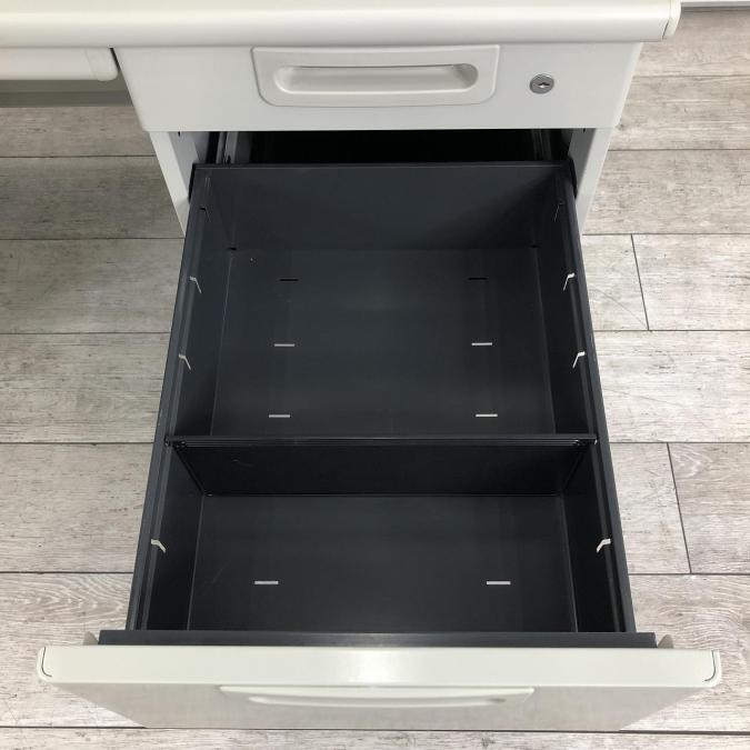 3段の引き出しは、もちろん鍵付きで、一括施錠が可能。上段、中段、下段に小物や書類用ファイル収納が可能です!