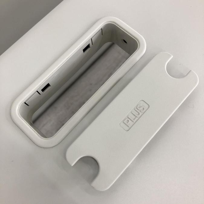 天板奥に配線口が2箇所付属しており、電話機、PC等デスクワークに必要なOA機器の整理も問題ございません。