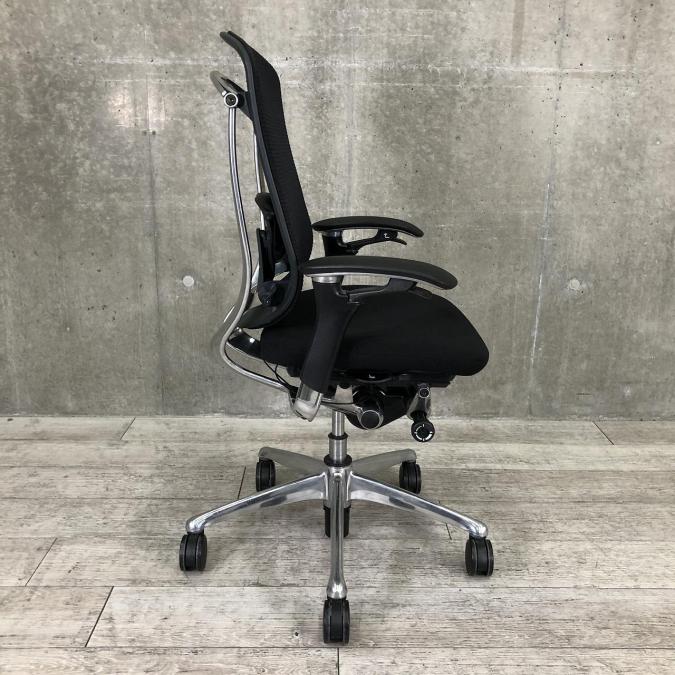 【世界で認められた革新的タスクチェア!人間工学に基づいた快適な座り心地を実現!】■オカムラ(okamura)製 コンテッサ(Contessa)チェア ハイバック 肘付き 背面メッシュ ■可動肘・ランバーサポート付 ■ブラック ※肘スレ有