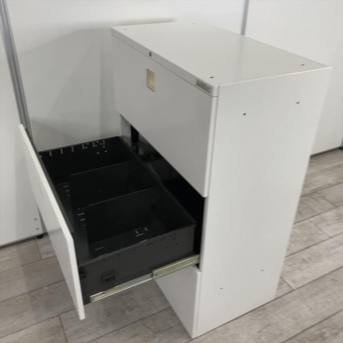 【オフィスの必需品!大容量の三段キャビネット!】■オカムラ(okamura)製 レクトラインシリーズ 3段ラテラル ローキャビネット ■天板/ベース付 ■シリンダー錠 ■ホワイト 【弊社使用欄:A01037187】