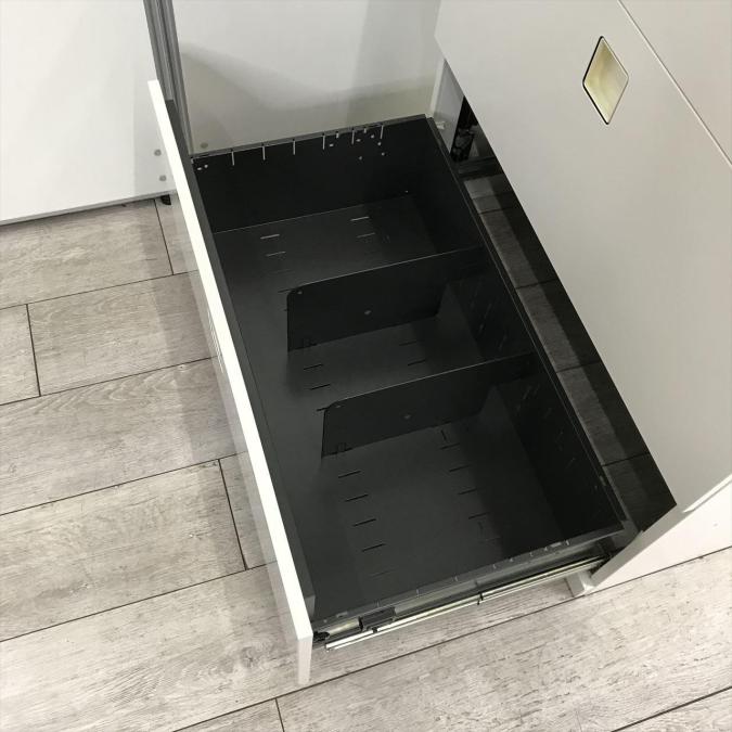 - 完備ベース、連結ビス、仕切り板が完備されている。