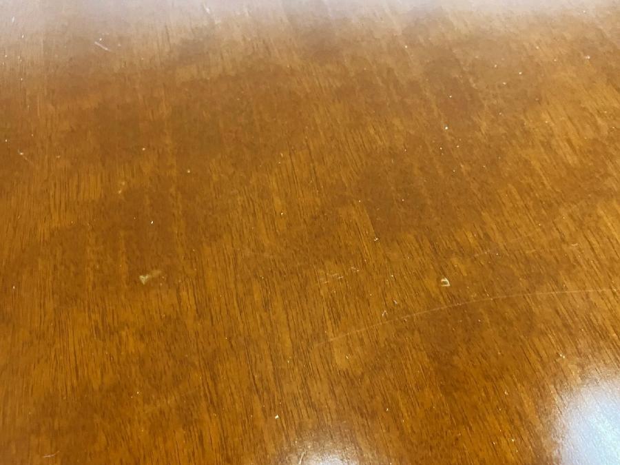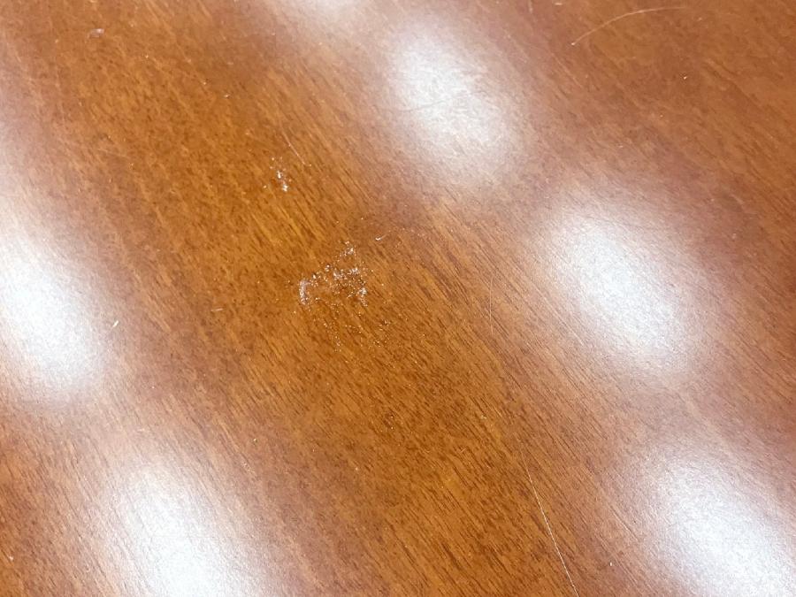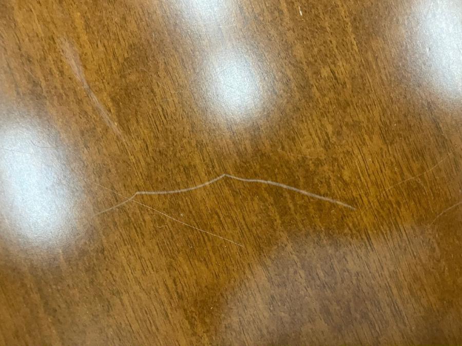 - 目立つ箇所あり傷・凹みが多数、深い傷・凹みが一部ある。(例、天板、幕板、棚板、サイド部分、脚部等にある。)